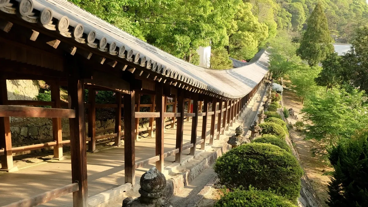 De vuelta en Okayama, si nos quedan fuerzas, cerraremos el día visitando el Santuario Kibitsu. Es famoso por su pasillo de madera cubierto de casi 400 metros de largo, una estructura arquitectónica impresionante que parece no tener fin.